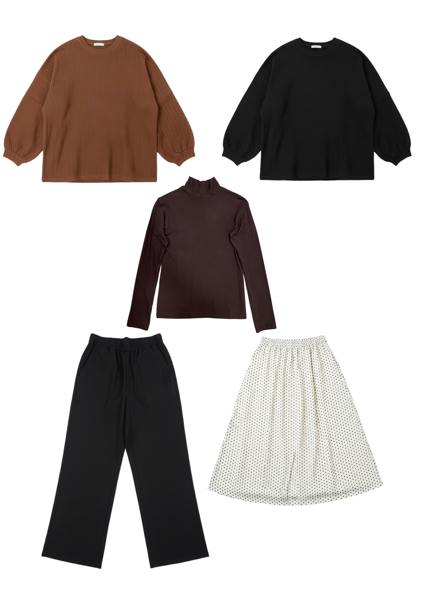 Découvrez le concept de commande en groupe, pensé pour simplifier votre expérience d’achat. Chaque groupe rassemble des vêtements soigneusement sélectionnés pour se coordonner parfaitement entre eux, tant au niveau des coupes que des couleurs et des textures.